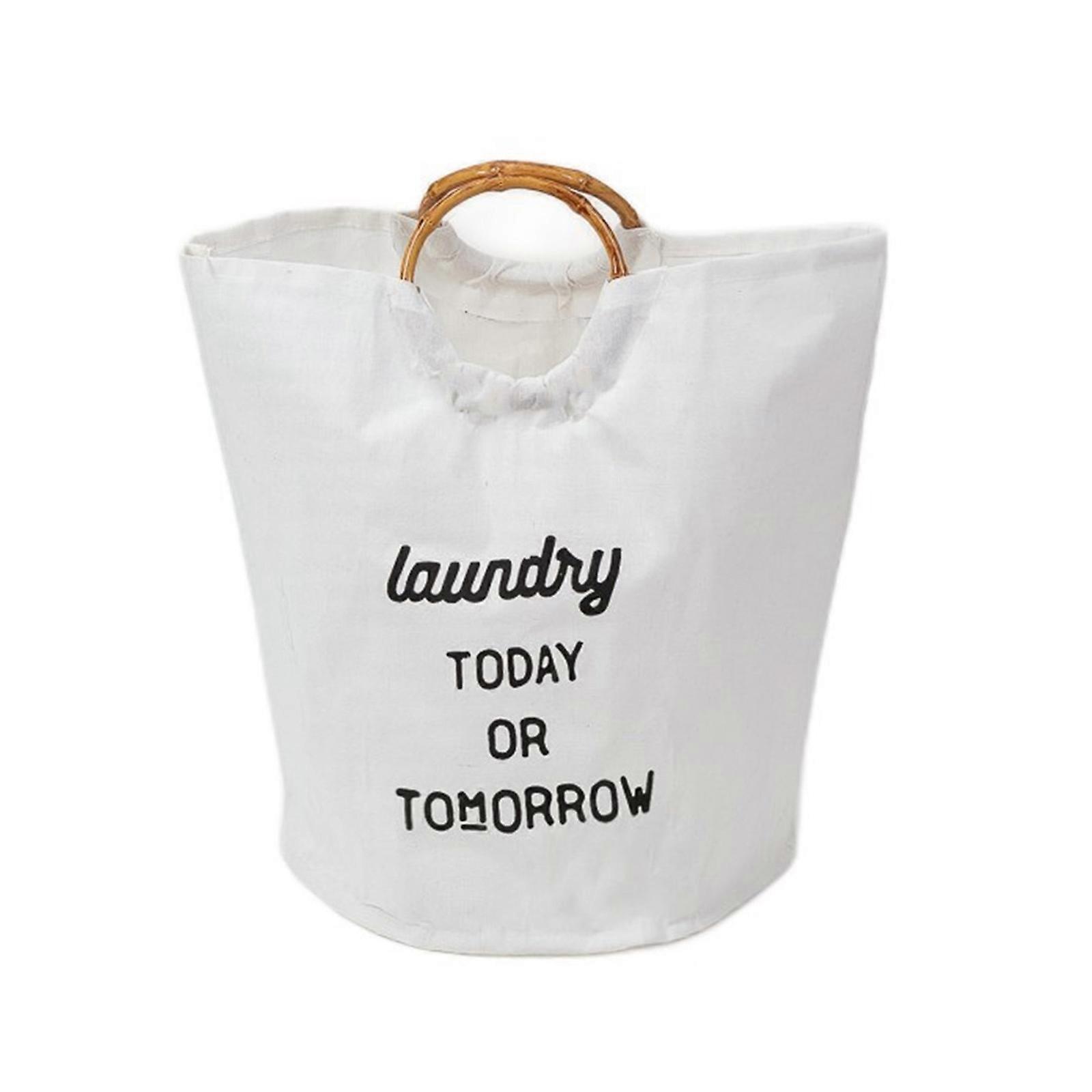 Bamboos Frame Foldable Clothes Organizers Cotton Fabric Waterproof Laundry Basket Portable Storage Solution For Household White
