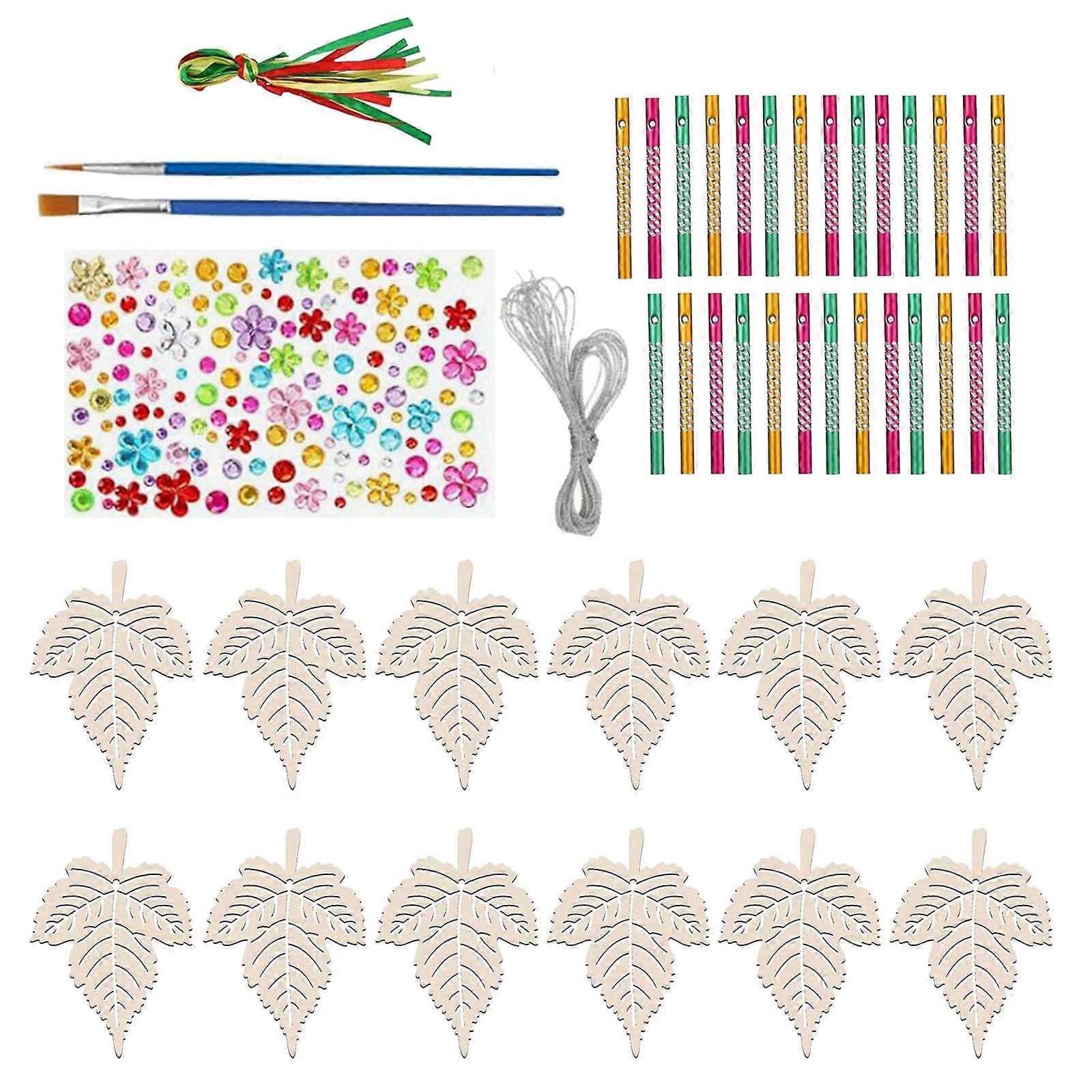 6/9/12 Pcs DIY Wind Chimes Kits Autumn Crafts Kits Wind Chimes Making Kits Maple Leaf Wind Chimes Craft Kits for Child 12 pieces hollow map