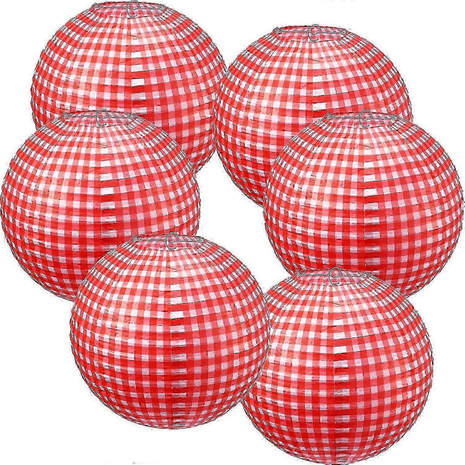 6-Piece Red and White Checkered Paper Lanterns for BBQ and Pizza Party Decorations - Perfect for Picnics