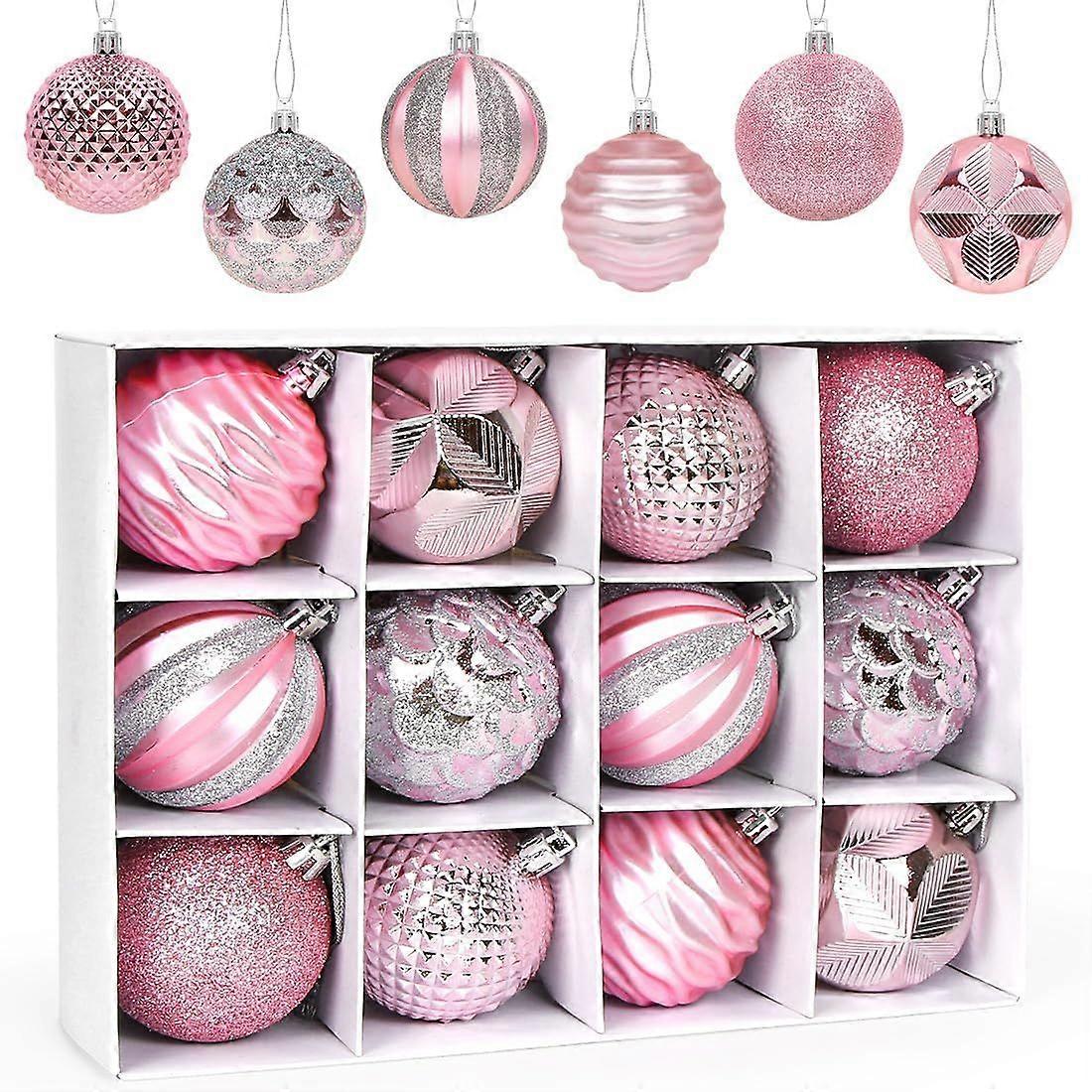 CM Pink Christmas Baubles, Set of 12 Plastic Christmas Baubles Ornaments, Hanging Ball Ornaments, Christmas Tree Decorations, for Christmas Maria