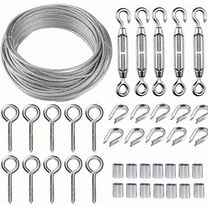 Stainless steel wire rope kit 30m/2mm - Heavy duty M5 wire tensioner, roll of fence wire, cable guardrail for climbing plants