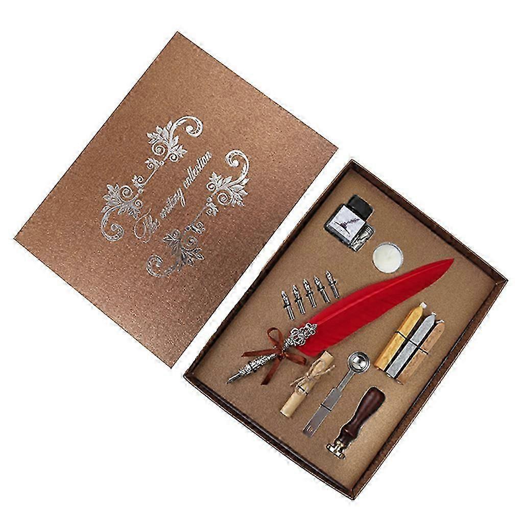 Antique Feather Pen Set Retro Writing Quill Pen Exquisite Ornate Relief Pattern Design Retro Wax Seal Stamp Kit Students Dark green Myi