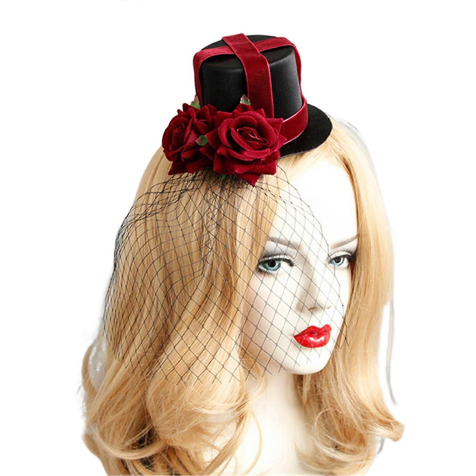 Gothic Rose&Veil Fascinator Hat Hair Clip compatible Girl Halloween Hair Barrettes compatible Teen Adult Banquets Wedding Hair Pin Myi