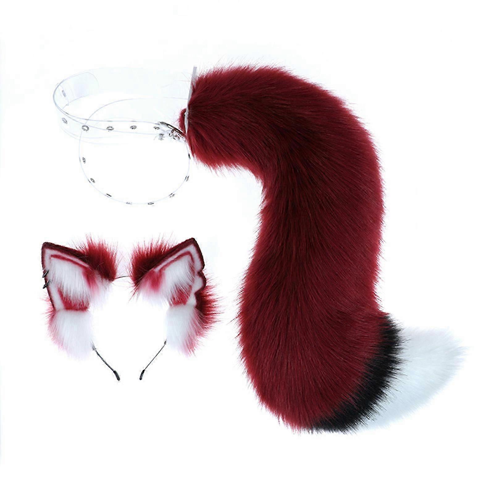 2pcs compatible Cat Ears and Wolf Fox Animal Tail Cosplay Costume Faux Fur Hair Clip Headdress Halloween Birthday Party Plush S Myi