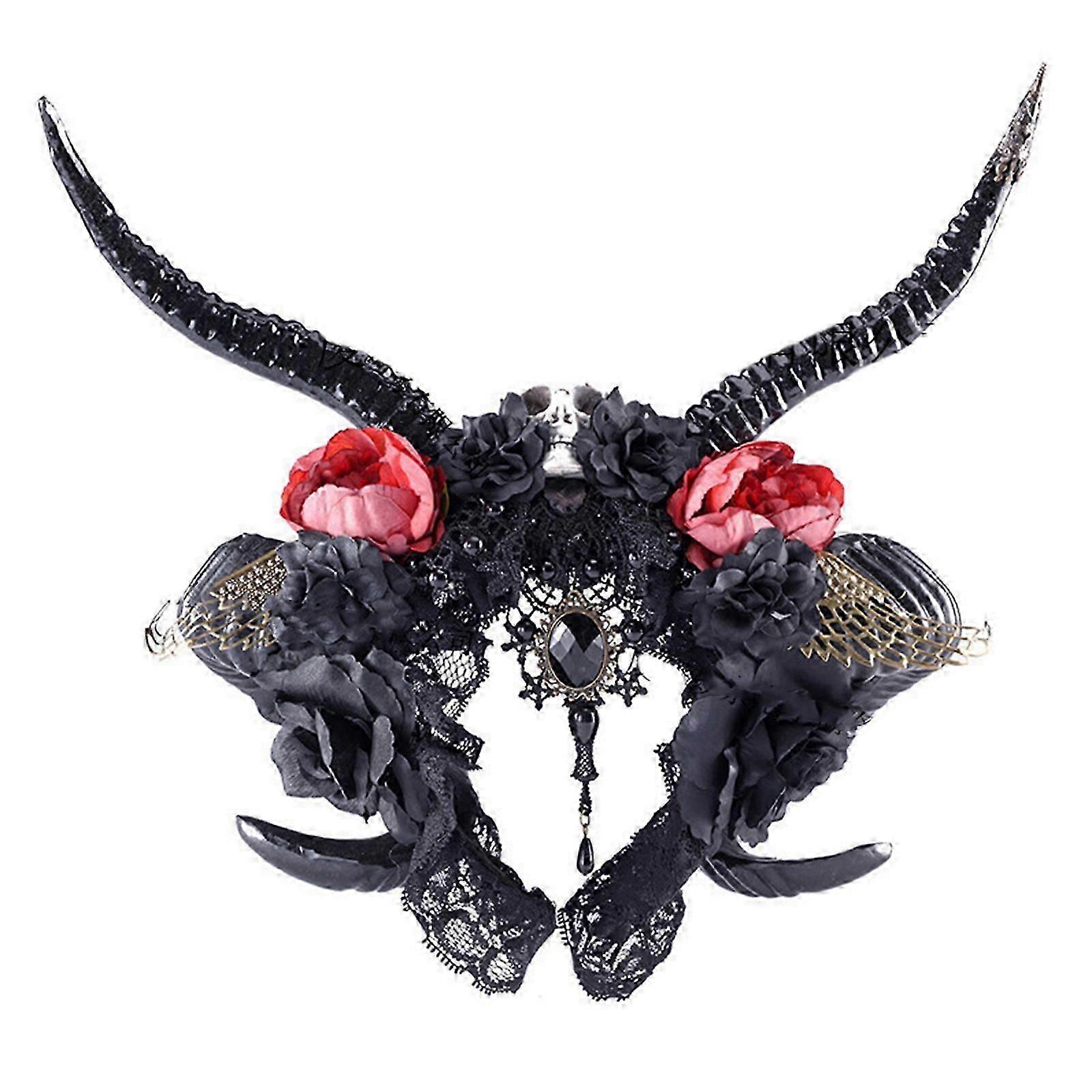 Unisex Halloween Hair Hoop Devil Sheep Horn Shape compatible Head Band with Flower Decor Cosplay Costume Masquerade Party Headp 6 Myi
