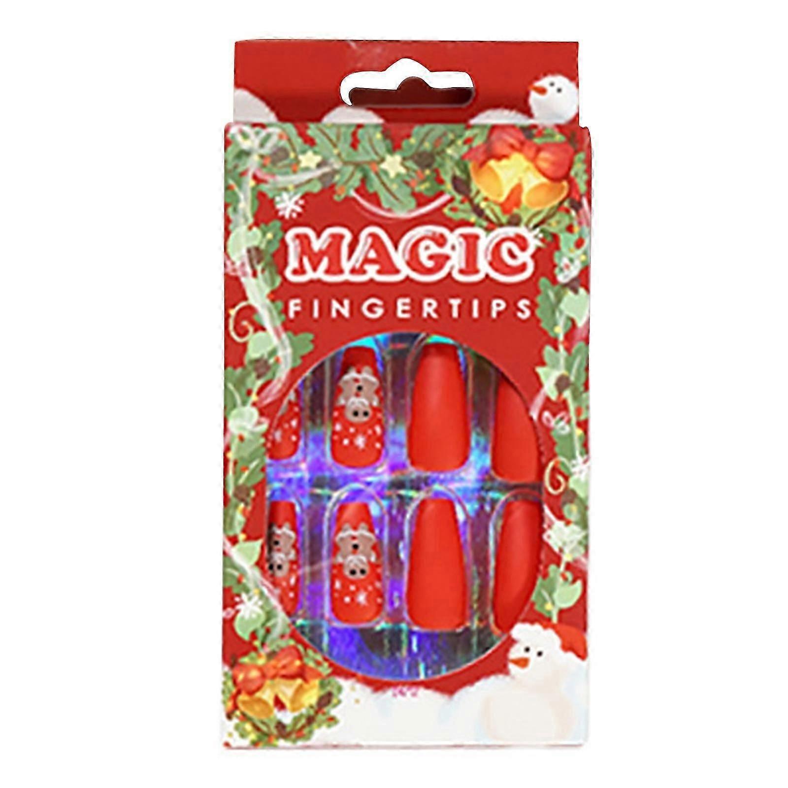 24pcs/Set Christmas Press On Nails Ballerina Medium Artificial Nail Tip Supplies Full Cover Acrylic Fingernail Kit Myi