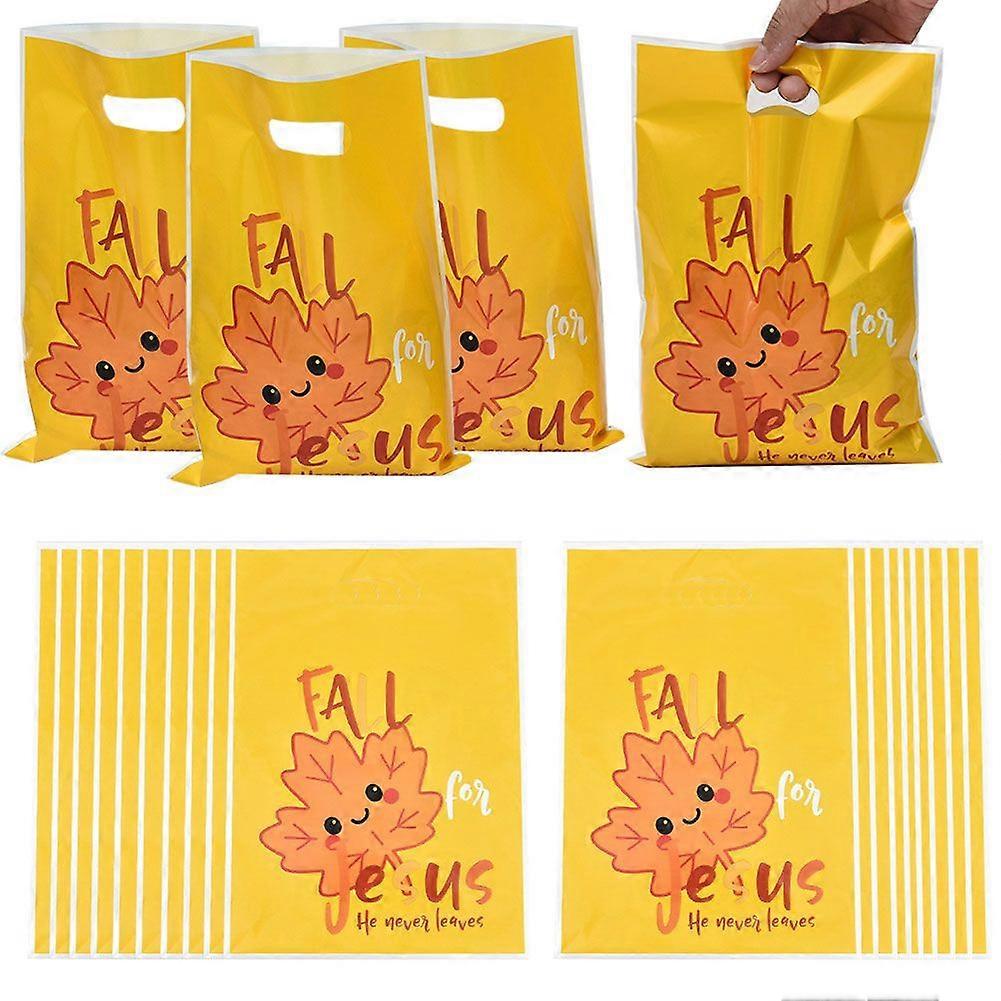 50/100pcs Autumn Maple Leaf Goodie Bags with Handles Christian Thanksgiving Treat Gfit Bags for Church Events & Halloween Party Favors