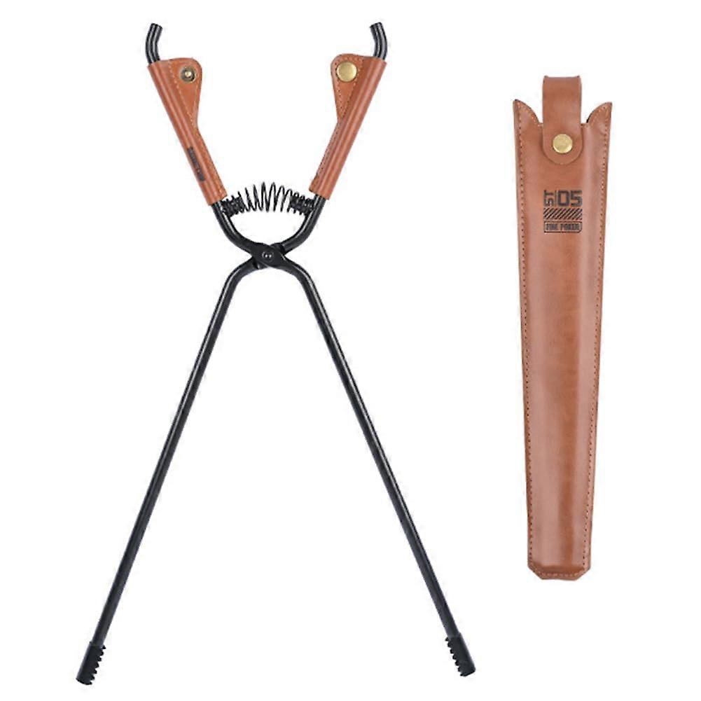 Bonfire Firewood Clip Carbon Steel Long Handle Fire Poker Tongs Leather Cover Anti Scald Outdoor Camping BBQ Tools