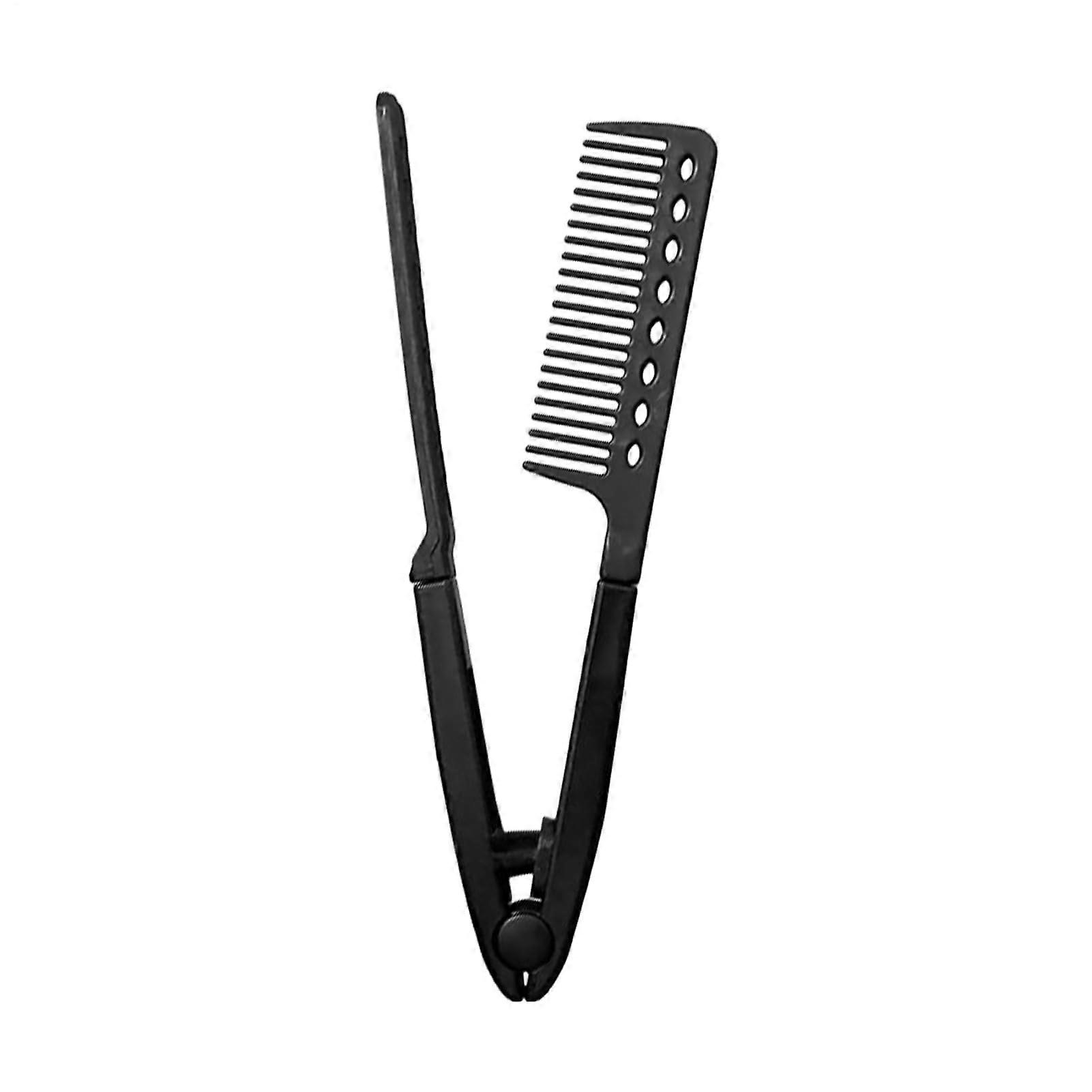 Hair Straightener Comb VShape Design, Straightening And Styling Brush, Portable Flat Iron For Home Travel, Black