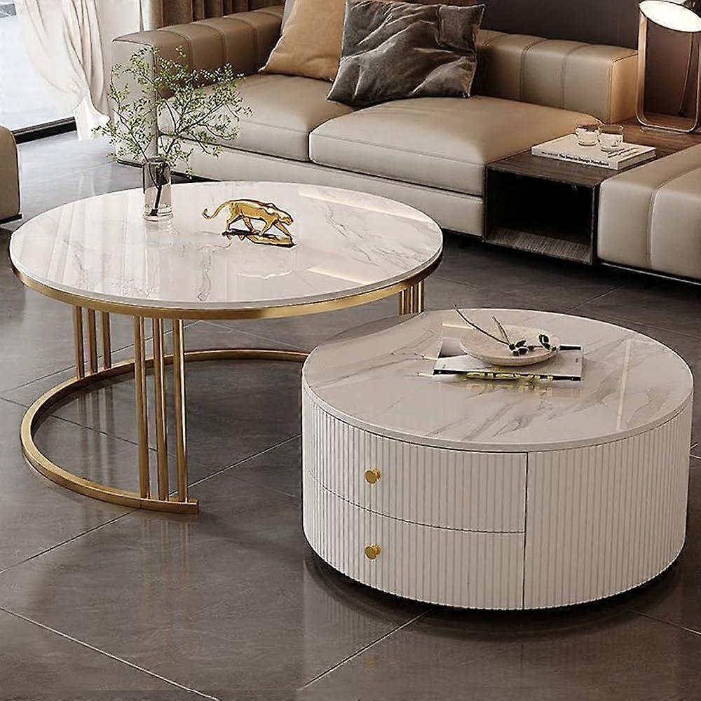 Round Nesting Coffee Tables Set With SpaceSaving Storage, Gold Finish, 35x5045x70 Cm, For Living Room, Bedroom