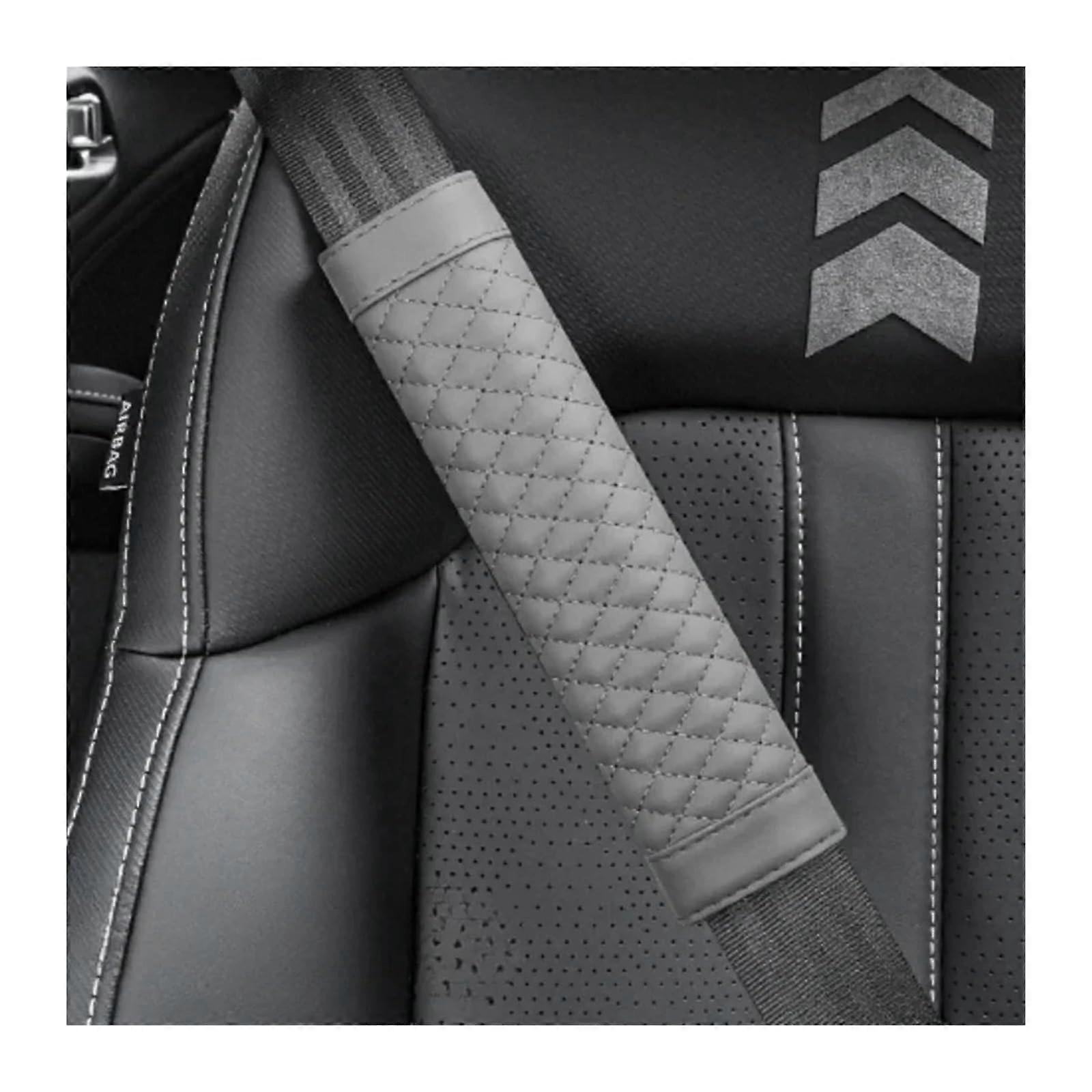 Seat Belt Pads 2pcs Grey Leather Embroidered Shoulder Cover Wear Resistant Non Slip Safety Cover Car Interior Decor