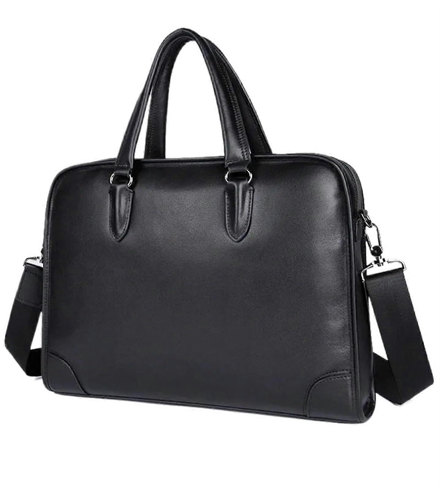 Men's Briefcase Black Leather 14Inch Laptop Messenger Bag Cowhide For Men NotebookLaptop Compatible Work Tote