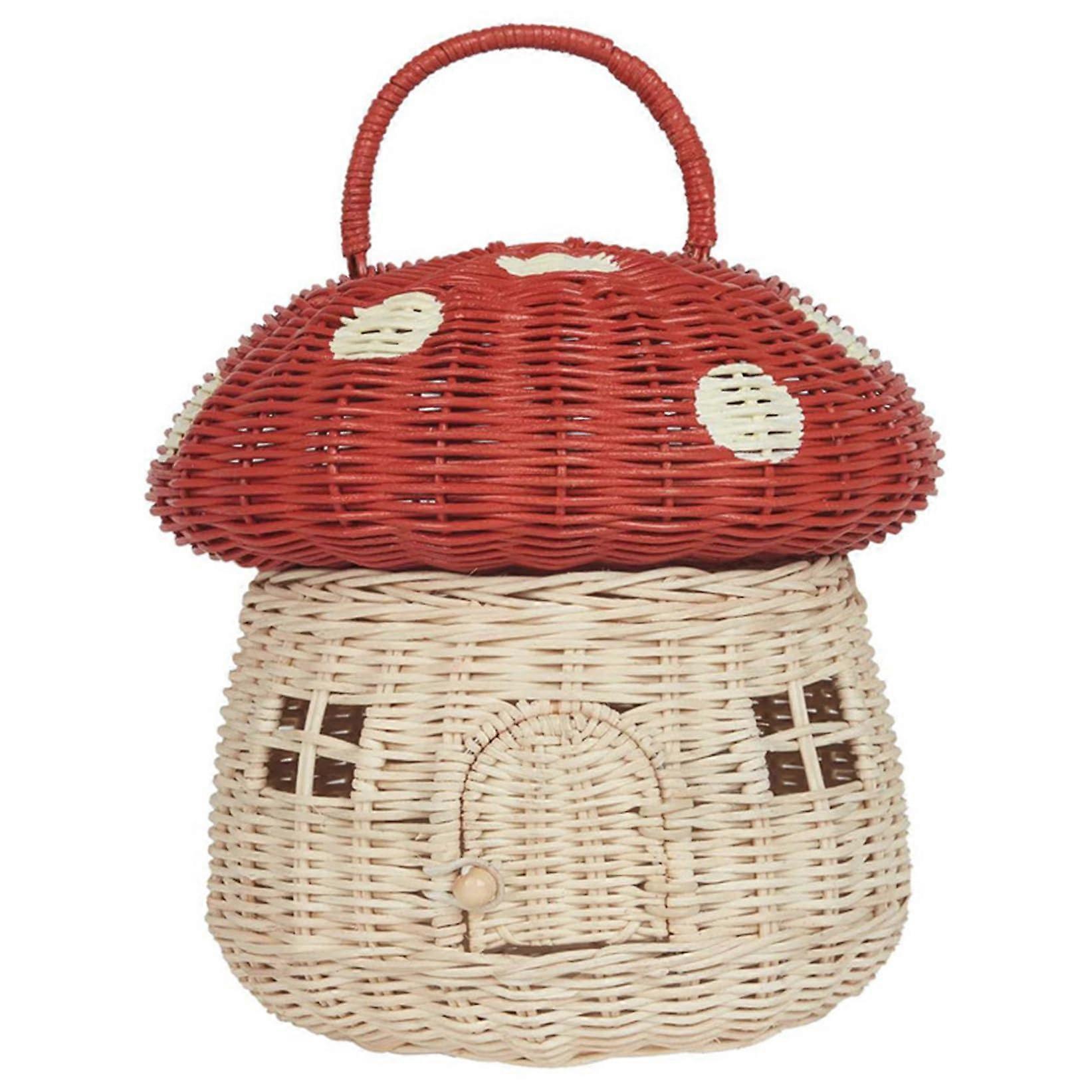 Mushroom Basket with Lid 11 Inch House Shaped Rattan Basket With Handle Photography Props Gifts for Kids