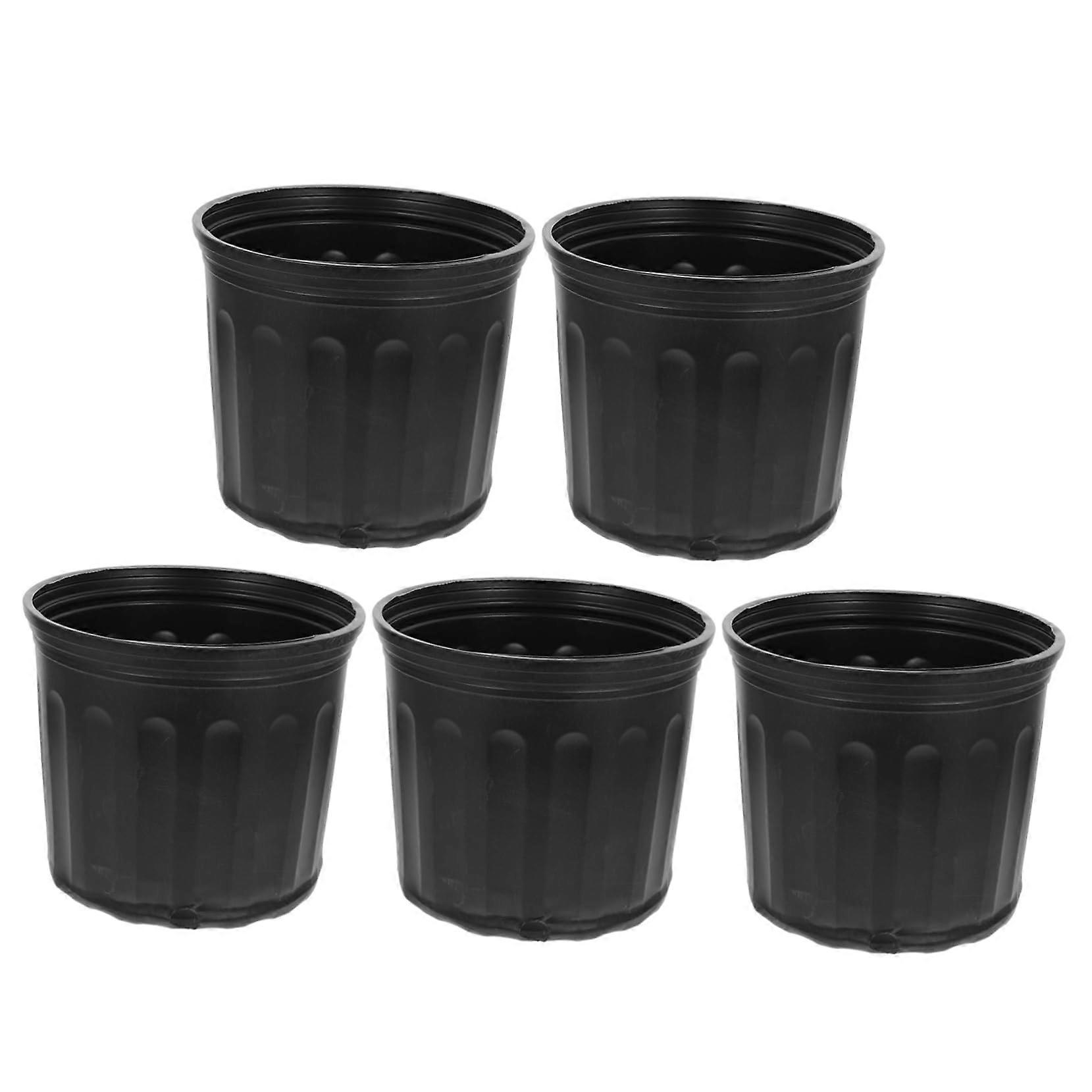 5pcs Black Plastic Root Control Flower Pot For Outdoor Home Use Nursery Plant Pot