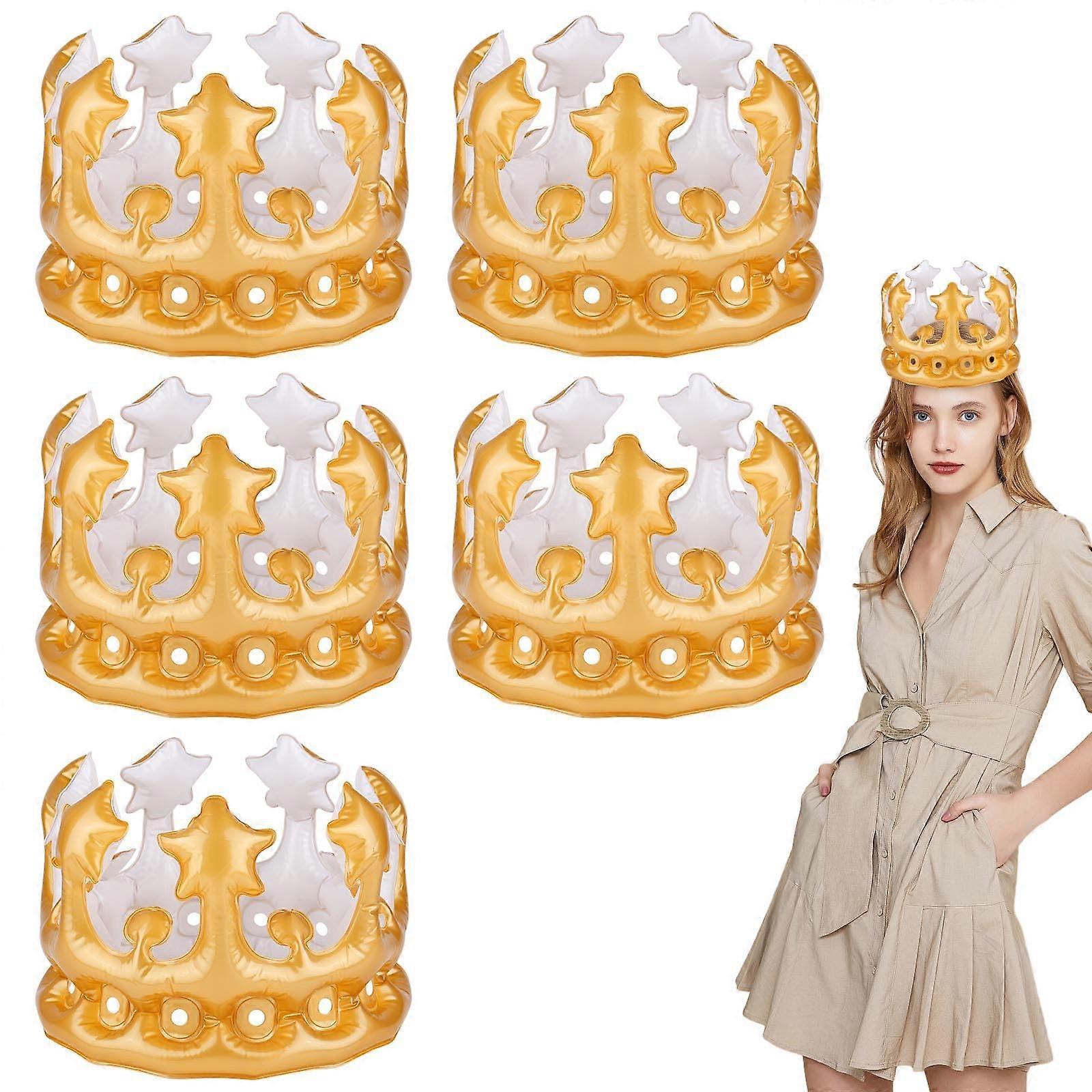 Inflatable Crown, 5Piece Set, Gold Crown, Carnival Costume Accessory, Teenagers and Adults Birthday Decoration