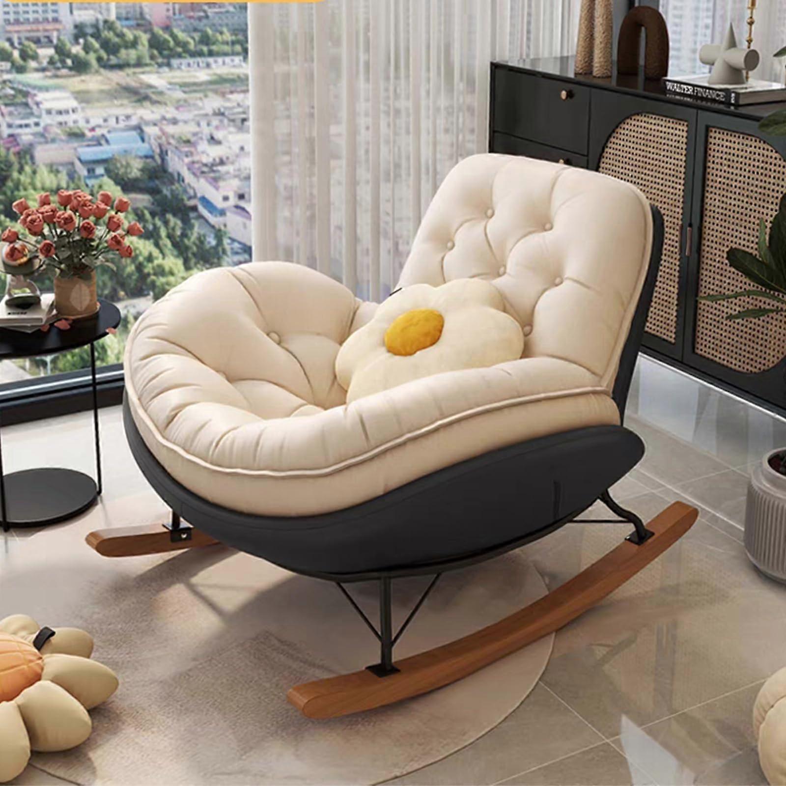 Modern Accent Rocking Chair Upholstered Glider Chair Back Leather Glider Grey White Nursery Bedroom Living Room