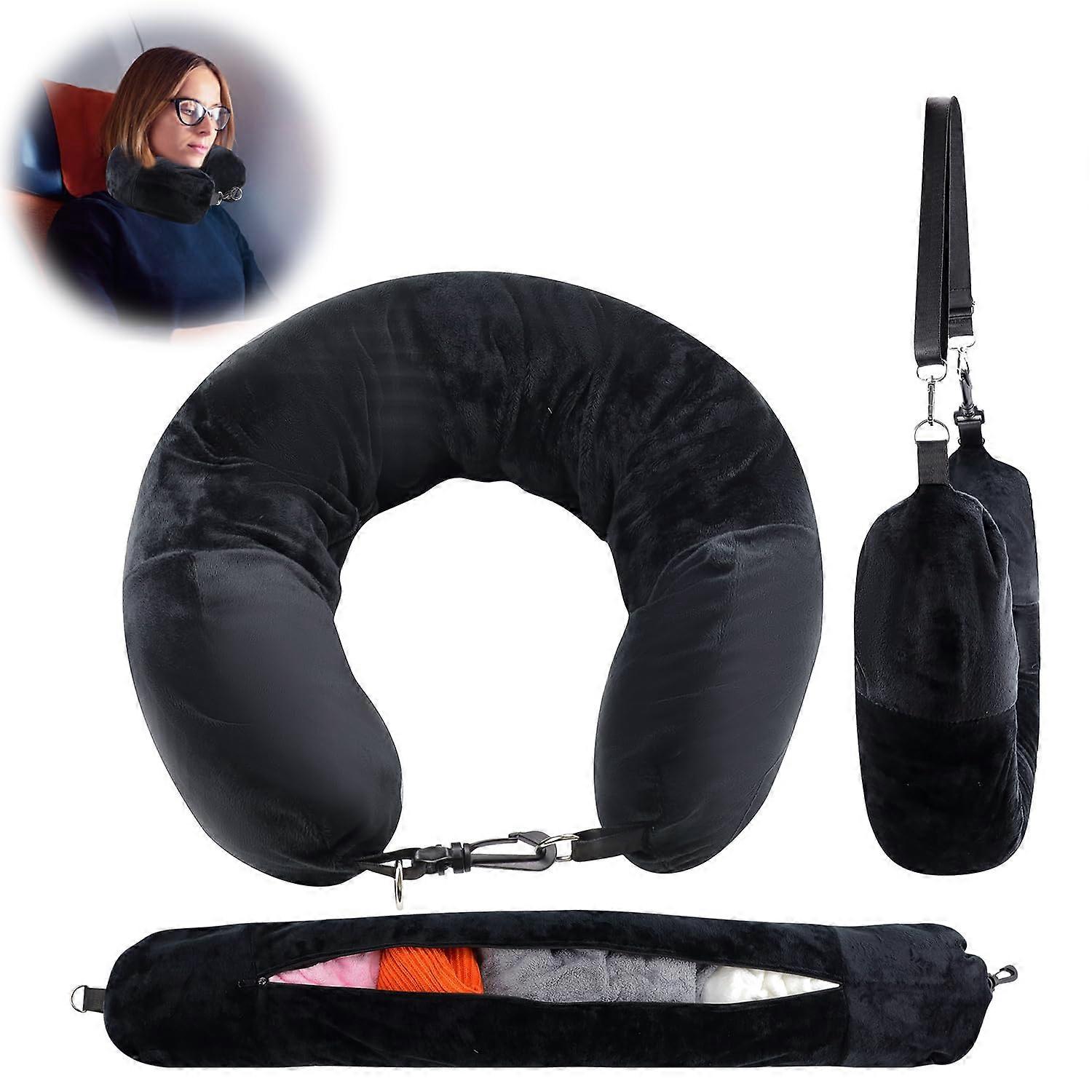 Travel Pillow Stuffable With Clothes CarryOn Luggage Compatible Soft Plush Velvet UShaped Transformable Multifunctional