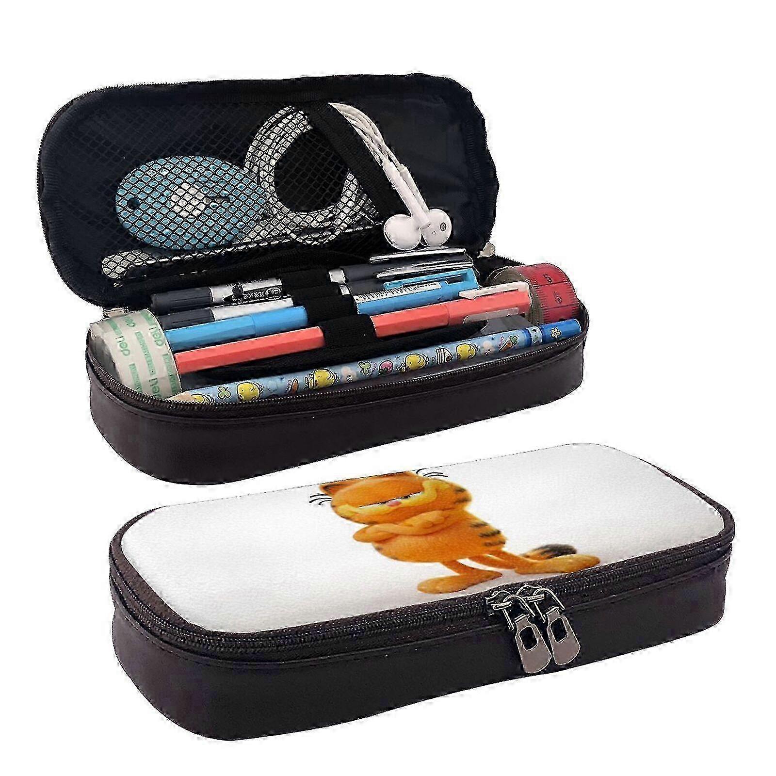 j40 The Garfield Show Pencil Case Brown PU Leather Organizer for School & Office g40