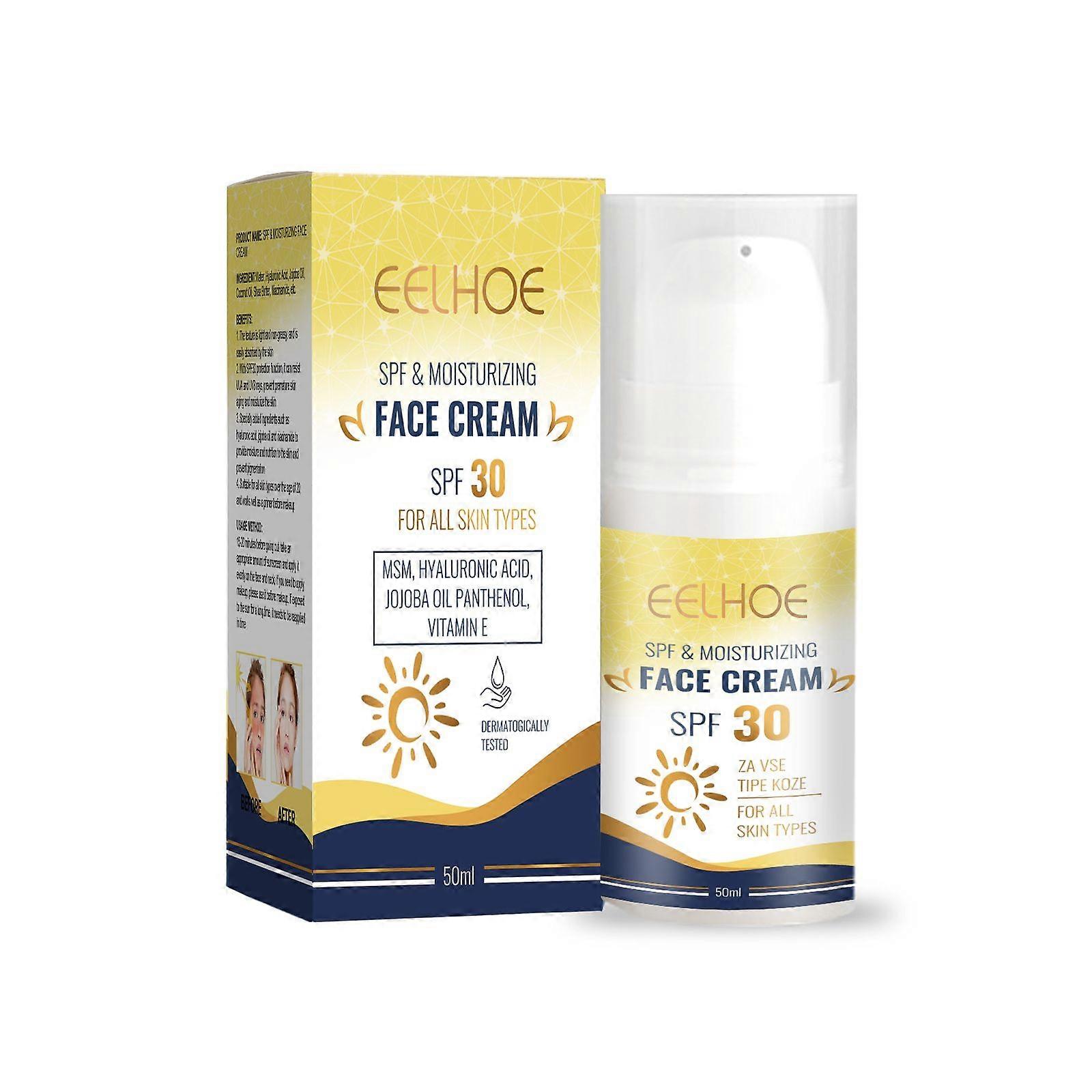 Our protective face cream contains hyaluronic acid, jojoba oil, and coconut oil. It protects against UVA and UVB rays, prevents premature skin aging, and nourishes and moisturizes the skin. It's easy to use: 15-20 minutes before going out, apply an appropriate amount of sunscreen evenly to the face and neck. If you wear makeup, apply it before applying makeup. Reapply promptly if you are exposed to sunlight for an extended period. It resists UVA and UVB rays, prevents premature skin aging, moisturizes the skin, provides moisture and nutrients, and prevents pigmentation.Ingredients: Hyaluronic acid, jojoba oil, coconut oil
