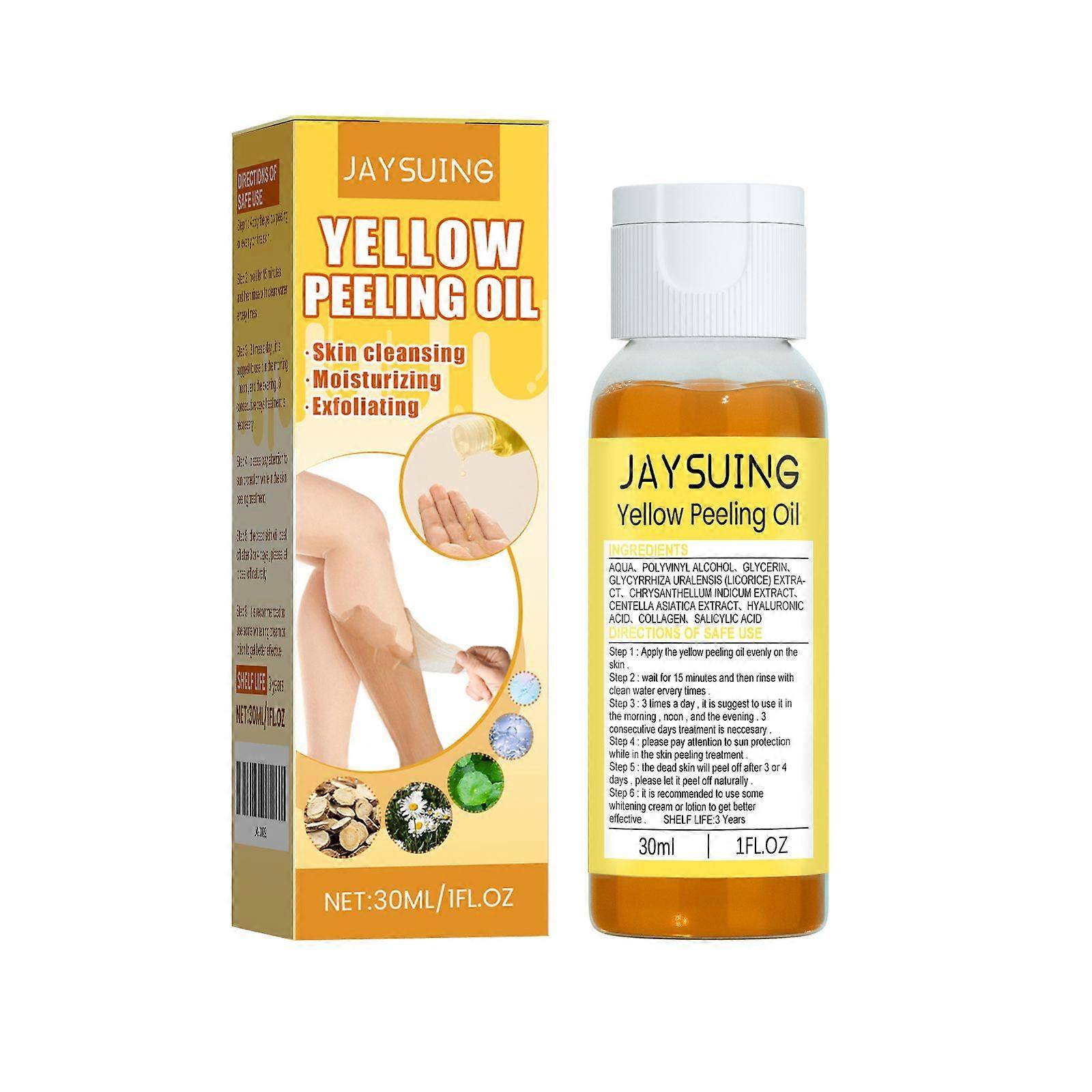 Our exfoliating oil for yellow-skinned skin contains salicylic acid, licorice extract, and chrysanthemum extract. It softens and cleanses the skin's stratum corneum, replenishes nutrients and moisture, removes dead skin, helps revitalize the skin, and brightens and moisturizes. It's easy to use: apply the yellow exfoliating oil evenly to the skin, wait 15 minutes, then rinse with water; use 3 times a day, preferably in the morning, noon, and evening. It requires 3 consecutive days of treatment; please pay attention to sun protection during the exfoliation process; dead skin will peel off naturally in 3-4 days; it is recommended to use some whitening cream or lotion for better results. It cleanses the skin, helps exfoliate, moisturizes and hydrates to relieve itching, helps damaged skin regenerate, and attracts and retains moisture.Ingredients: Salicylic acid, licorice extract, chrysanthemum extract