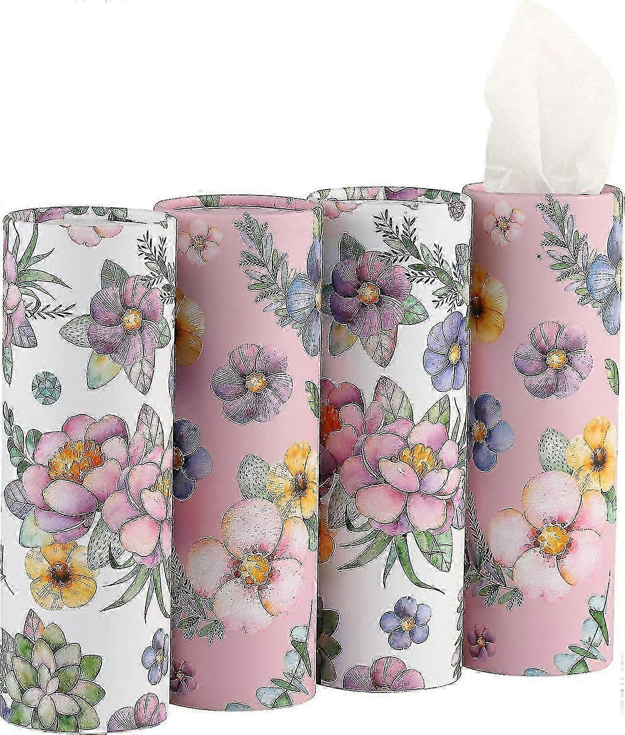 Car Tissue Holder With Facial Tissue Bulk - 4 Pk Tissue Tubes For Car - Travel Tissues Perfect Fit For Car Cup Holder Car Tissues Box Round