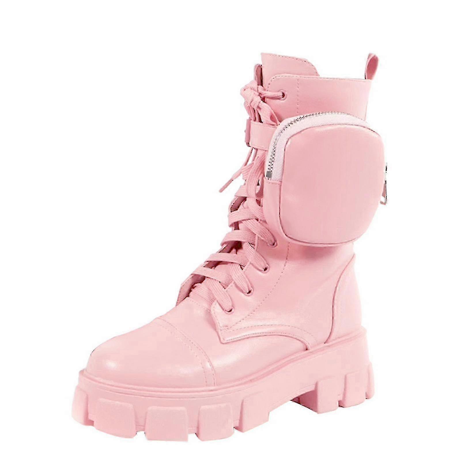 z Stylish Platform Boots with Small Pocket Women Lace Up Round head Boots for Autumn