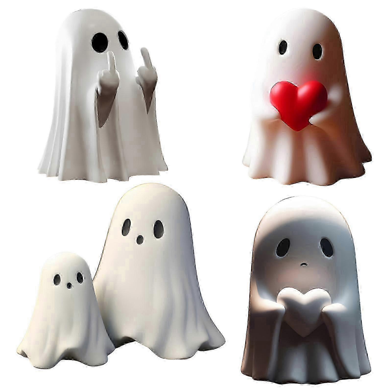 z 5Pcs Halloween Ghost Figurine Spooky Love Heart Middle Finger Resin Statue for Home Office Desktop