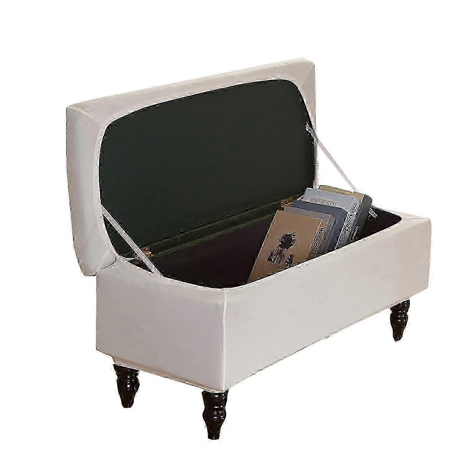 z Ottoman Cover Rectangle, Stretch Velvet Storage Ottoman Cover, Removable Storage Bench Cover with Elastic Bands Ties,White,Large