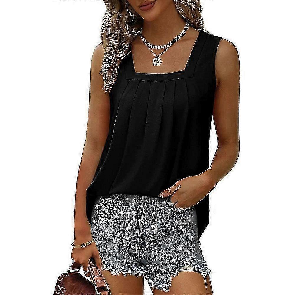 z YYFS Women's Fashion Casual Solid Color Print Sleeveless Square Collar T-shirts and Tops