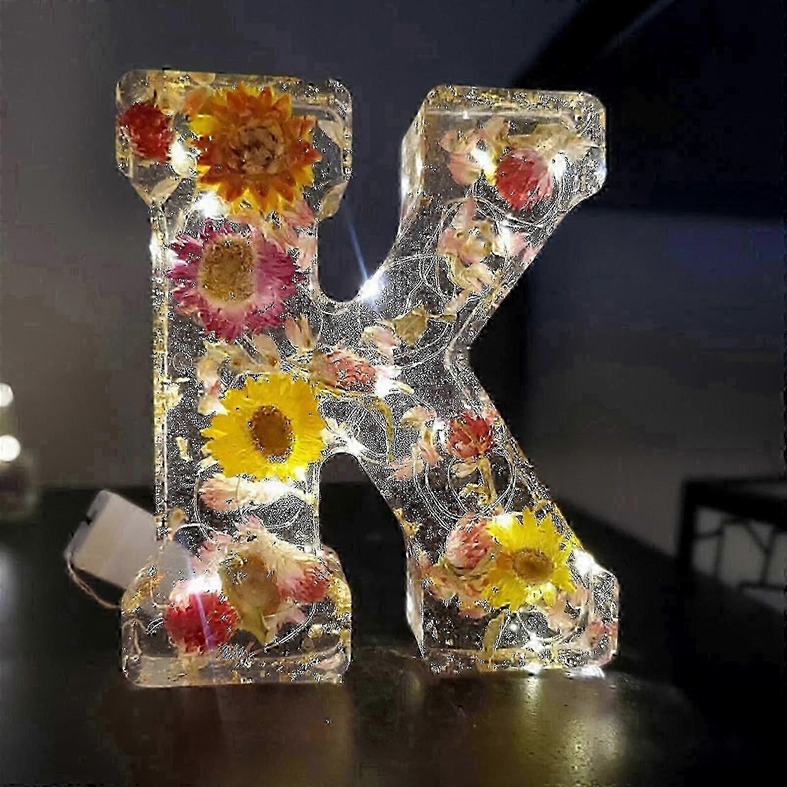 z Pressed Flower Resin Letters With Led Light ,floral Resin Night Light 26 Letter Selection,50% Offerp