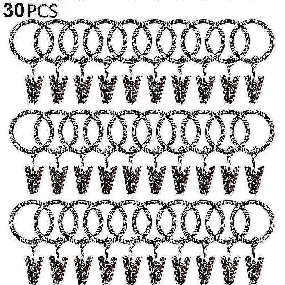 z 30 Pcs Curtain Rings With Clips, Strong Drapery Clips Hooks On Tension Rod Bracket, Interior Diameter Metal Eyelets Decorative Drapes Window Han