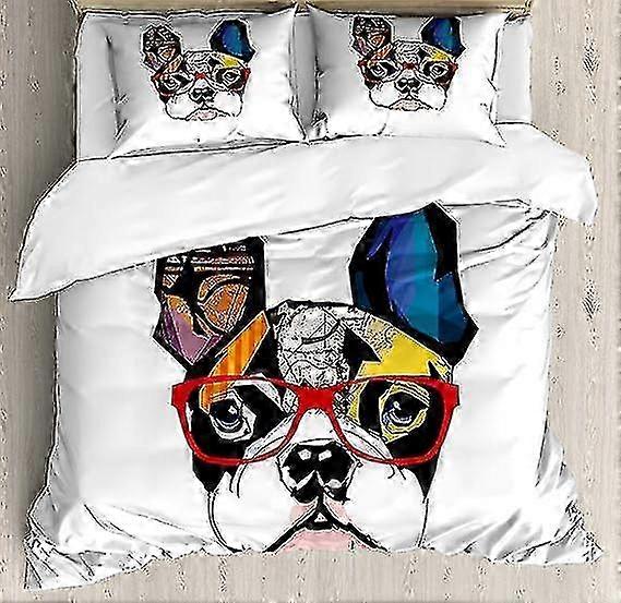 Art Housse de Couette Ensemble Français Bouledogue Moderne Coloré Décoratif 3 Pièces Ensemble De Literie Avec 2 Oreillers