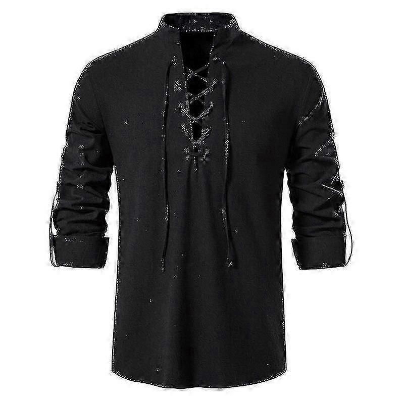 Mens Scottish Jacobite Ghillie Kilt Shirt Medieval Renaissance Pirate Costume Long Sleeve Henley