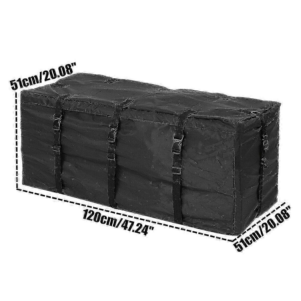 Usage Tips:Specification:Color:BlackMaterial:600D Waterproof FabricSize:about 120x51x51cm/47.24x20.08x20.08"[Conversion: 1cm=0.3937 inch, 1inch=2.54 cm]Loading capacity: 11 cubic ft Features:Waterproof rooftop cargo bag with 11 cubic feet of space.When not in use, folds for easy and compact storage.Mounts directly to roof rack systems using 8 built-in tie straps.Increases vehicle cargo space Waterproof design protects cargo against road grit, sun, wind and rain Soft sides flex to fit odd-shaped loads Folds compact for easy storage.For use with passenger cars, v ans, and SUVs with roof rack systems. Package Included:1 x Car Rooftop Bag Note:-May it get a little wet when use in the Extremely Heavy Rain for a long time.-Due to different producing batches, product details might be a little different. If you minding the difference, please buy it carefully.-Please allow 1-3CM differs due to manual measurement.