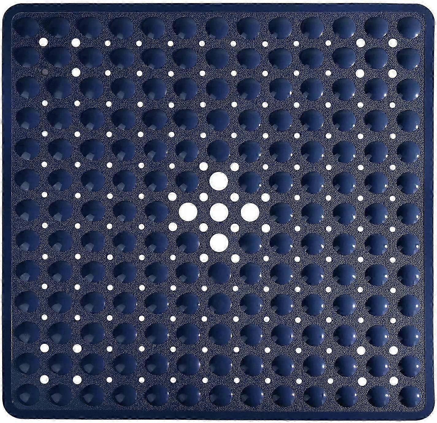 Square Bath Shower Tub Mat for Bathroom, Non Slip Bathtub Mats with Suction Cups, Drain Holes, Machine Washable, 21 x 21 Inches, Navy Bluez