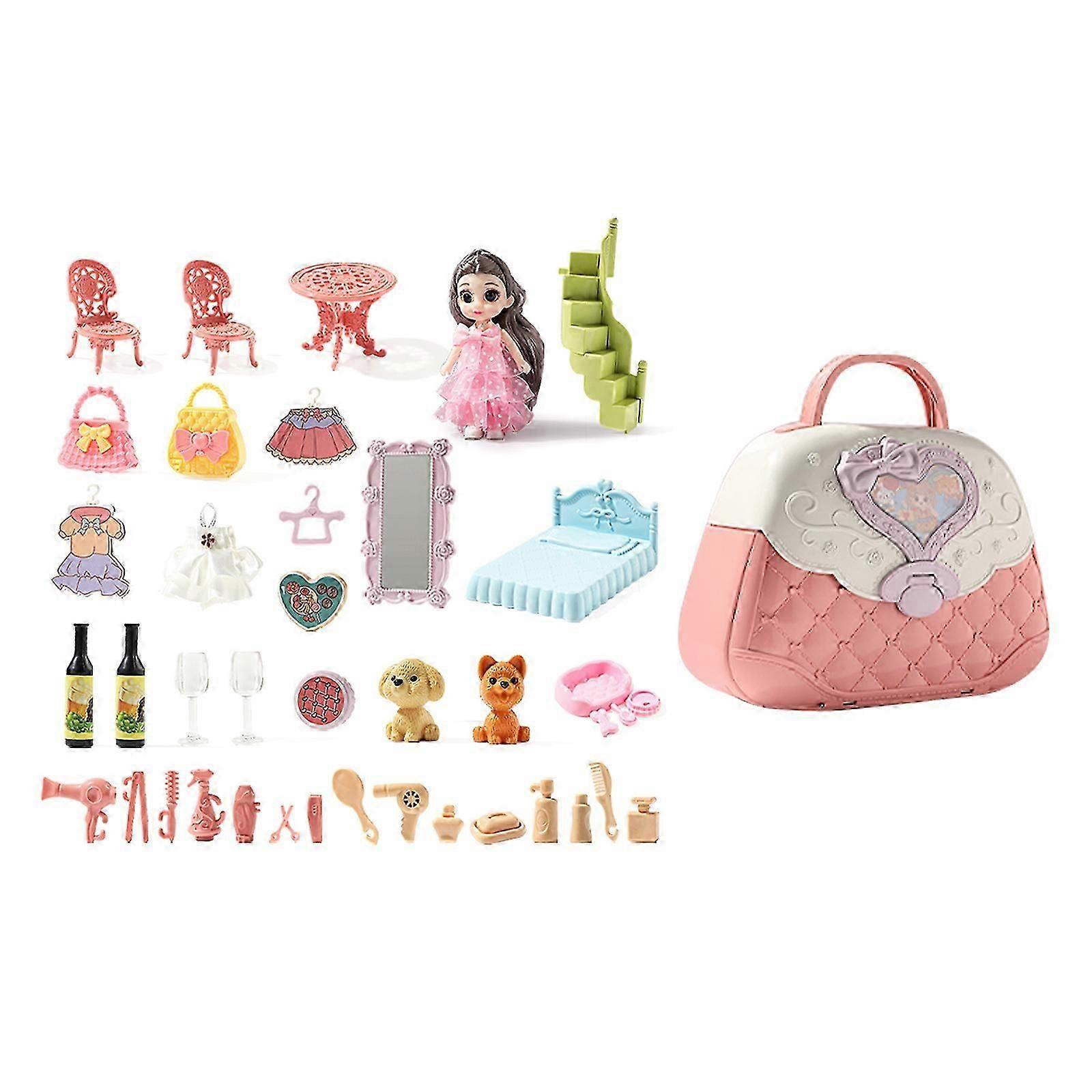 Diy Dollhouse For Dolls Handbag Dolls Accessories Cute House Miniatures Villa Kitchen Castle Toy Girls Birthday Gift