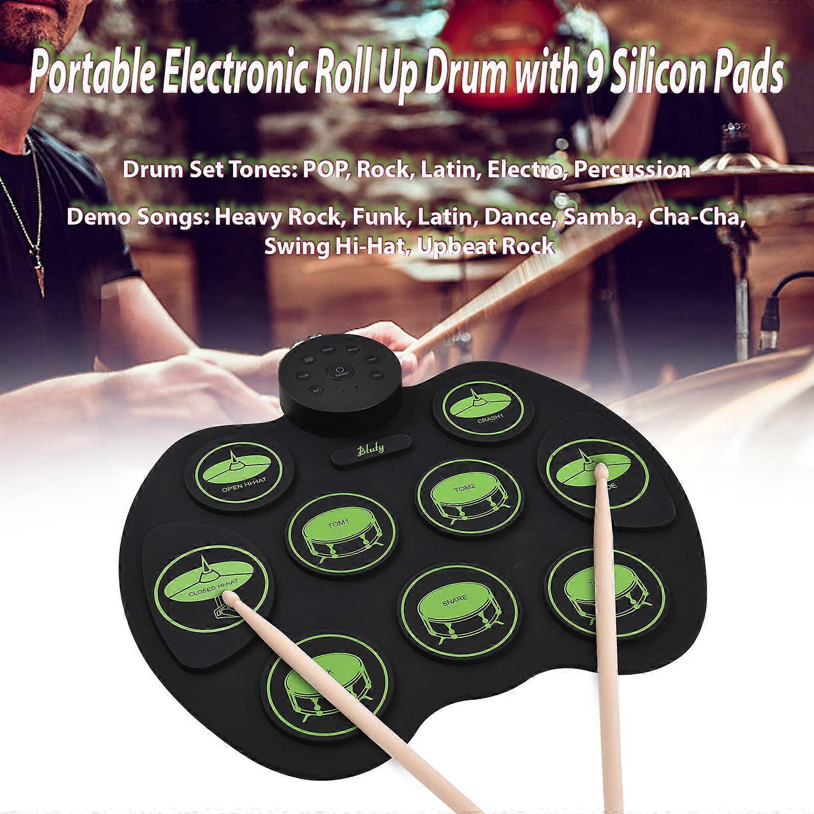 BtutyPortable electronic drumHand-rolled silicone drum set USBOr battery powered (batteries not included) without speakerBlack and green
