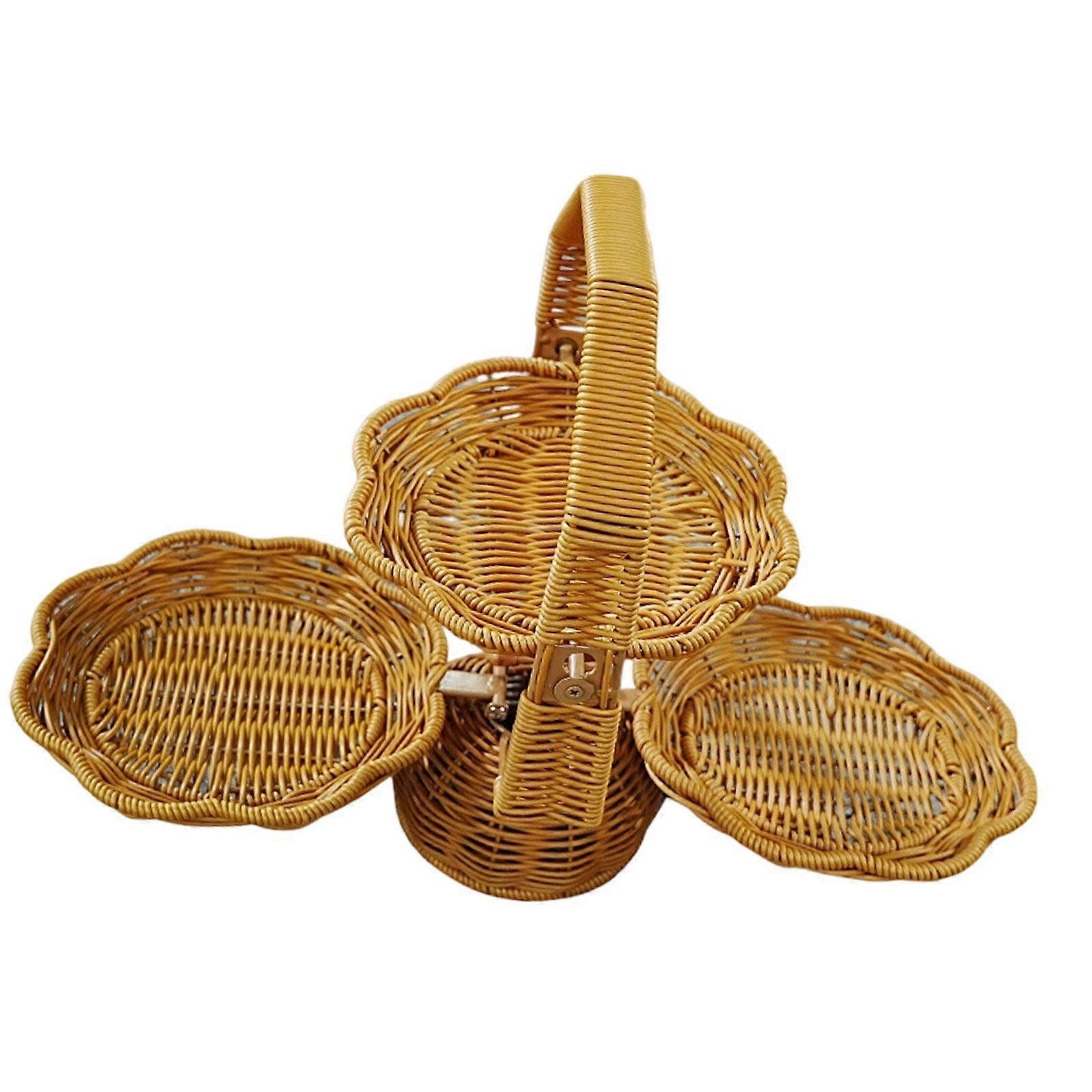 Description: 【Material】: Crafted from quality PP with a faux rattan weave, this fruit basket offers great flexibility and a smooth, making it easy to clean and maintain 【Foldable】Kitchen Storage Basket is Designed with a unique folding feature for easy portability and space saving storage. simply fold it compactly when not in use, 19.69inchx9.45inchx13.39inch in size 【Breathable】The hollow out design allows excellent drainage and ventilation to keep your fruits and vegetables fresh 【Versatile Storage】: Great for daily use, this 3 layered rack can hold fruits, vegetables, snacks, desserts, pastries, and more 【Occasion】: Fruit holder is Suitable for weddings, parties, holidays, picnics, kitchens, living rooms, bedrooms, offices, and more Specification: Material: PP   Size Chart: 50cmx24cmx34cm/19.69inchx9.45inchx13.39inch Package Includes: 1 Fruit Basket Note: Please allow slightly errors 1-2cm/0.39-0.79inch differences due to manual measurement.