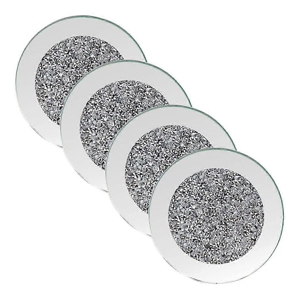 4 Pcs Glass Mirrored Coaster 4x4inch Crushed Cup Mat Tabletop Decor for Restaurant Kitchen Bar Dinin