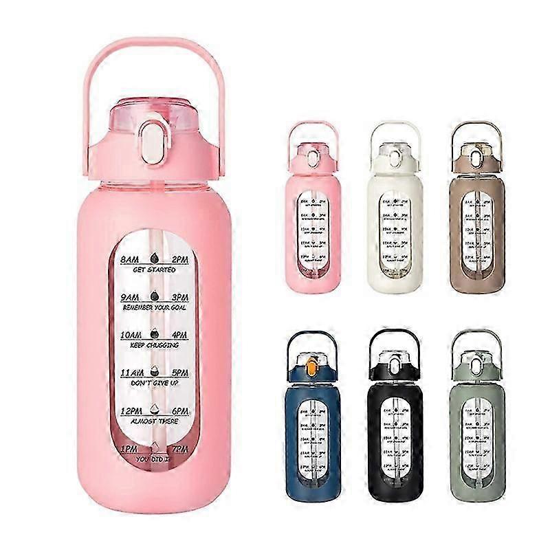 Glass Water Bottle (64Oz) Silicone Sleeve, Time Marker & Straw for Gym & Home