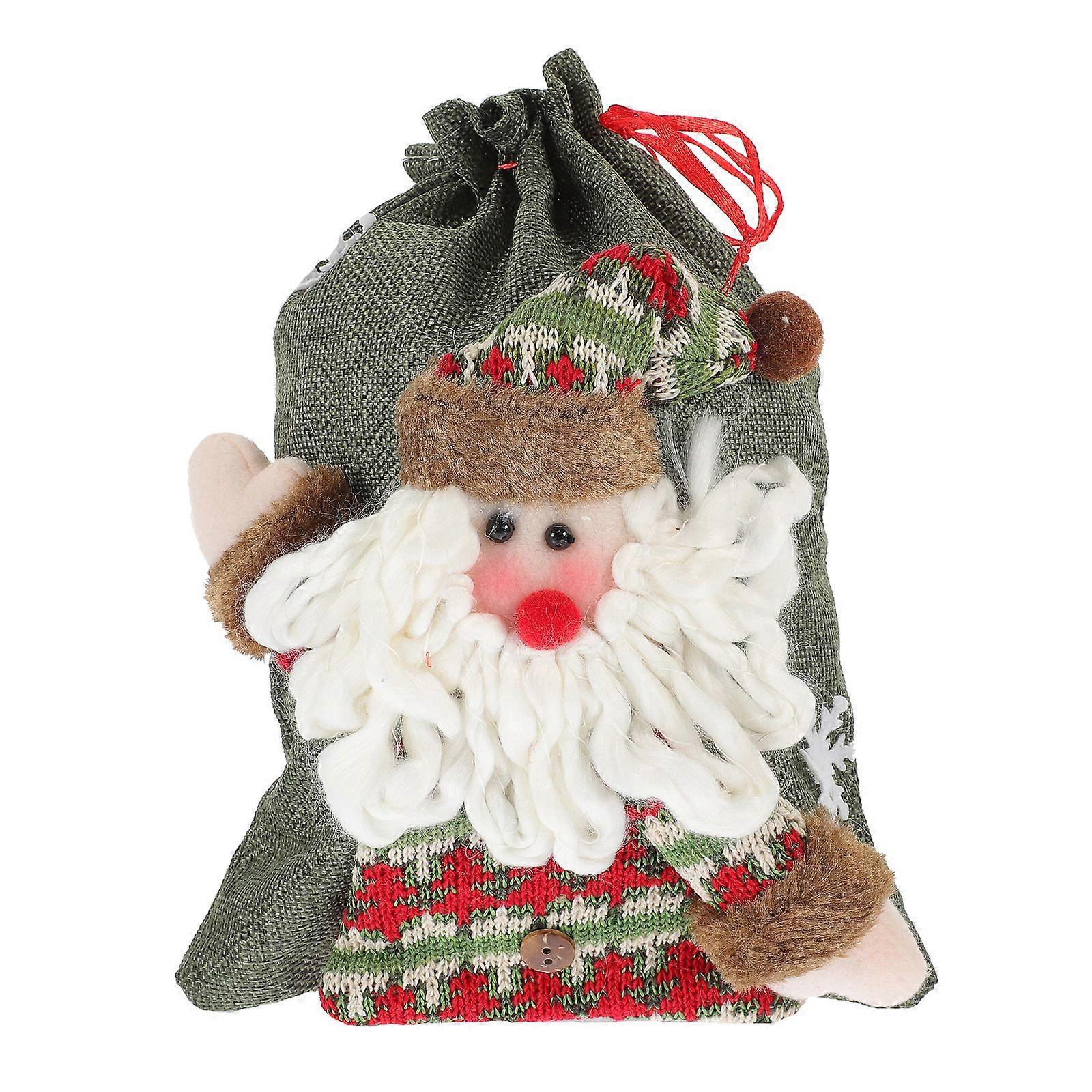 1pc Santa Claus Patterned Pouch Candy Bag Festival Gift Holder Olive Green