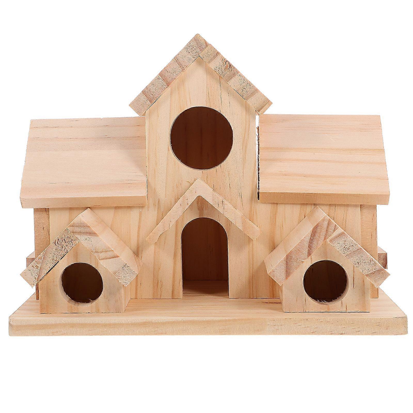 Wooden Bird House: 6 Hole Handmade Wood Birdhouses Hanging Big Birdhouse Small Birds Hummingbirds Shelter For Outside Backyard Courtyard Patio Decor