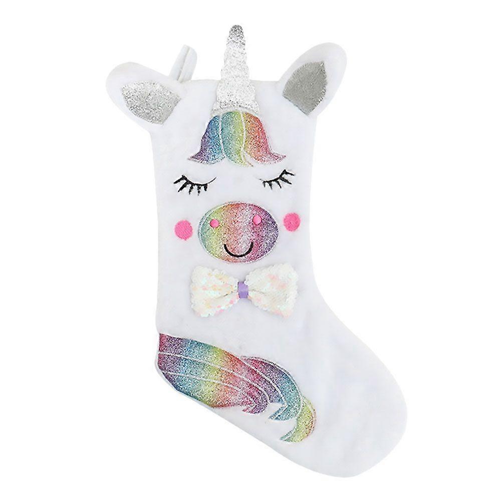 Unicorn Designed Christmas Stocking Christmas Candy Holder present Socks Hanging Pendant with Light