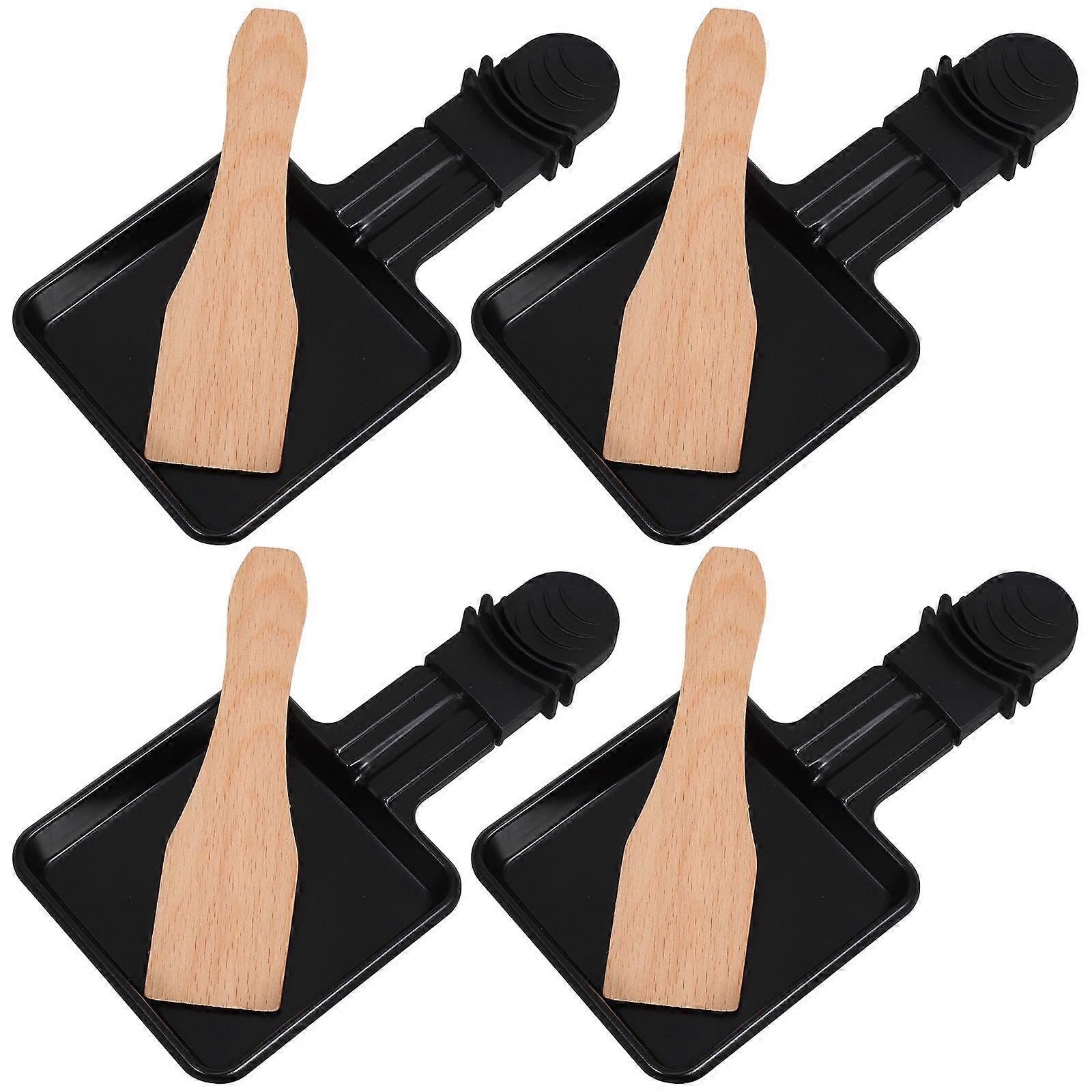 4 Sets Mini Raclette Grill Pan Cheese Trays Spatula Raclette Mini Grill Trays For Cheese Melting Grilled Pan Cheese Melts Tray