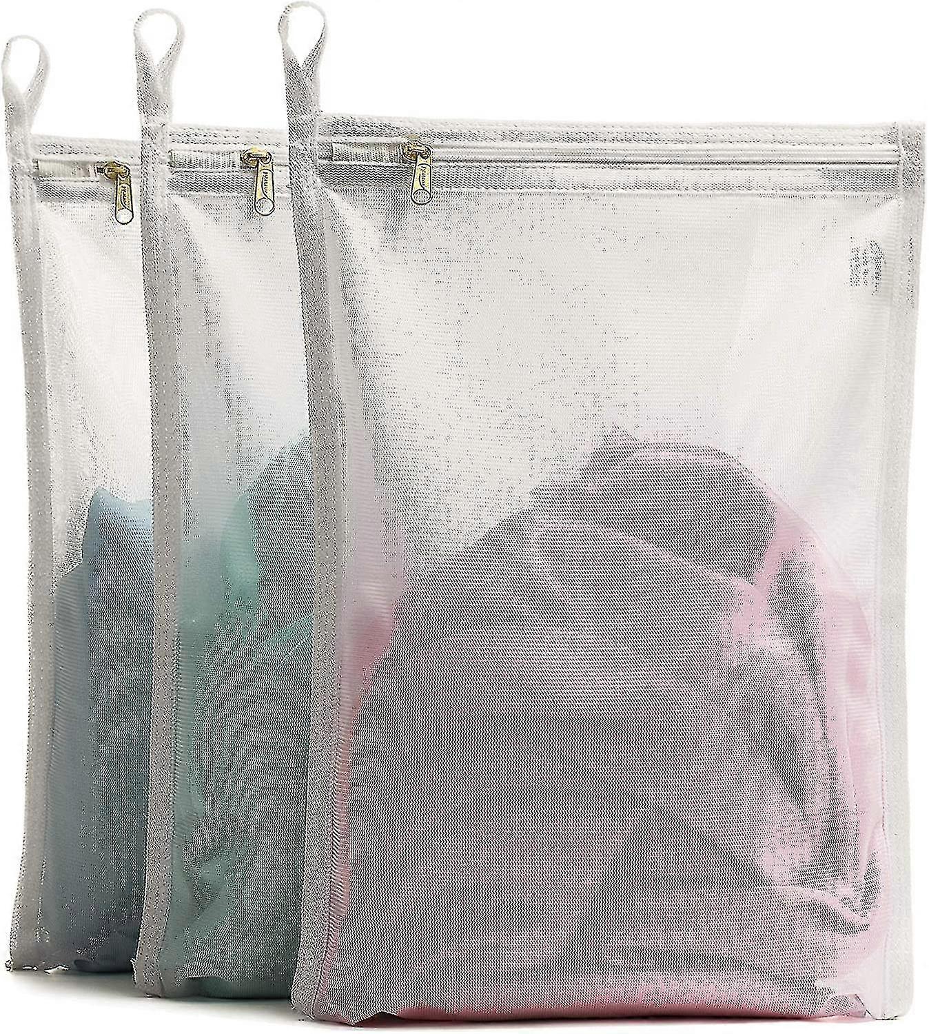 Delicates Laundry Bags with Fine Mesh for Underwear, Lingerie, Bra, Pantyhose & Socks. Zip Closure & Hanger Loops, White, 3 Large Bags