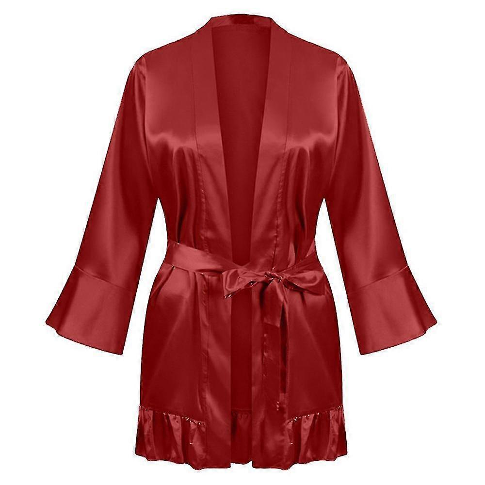 Women's Ruffle Kimono Robe - Seductive Sleepwear with Comfortable Design for a Blissful Night