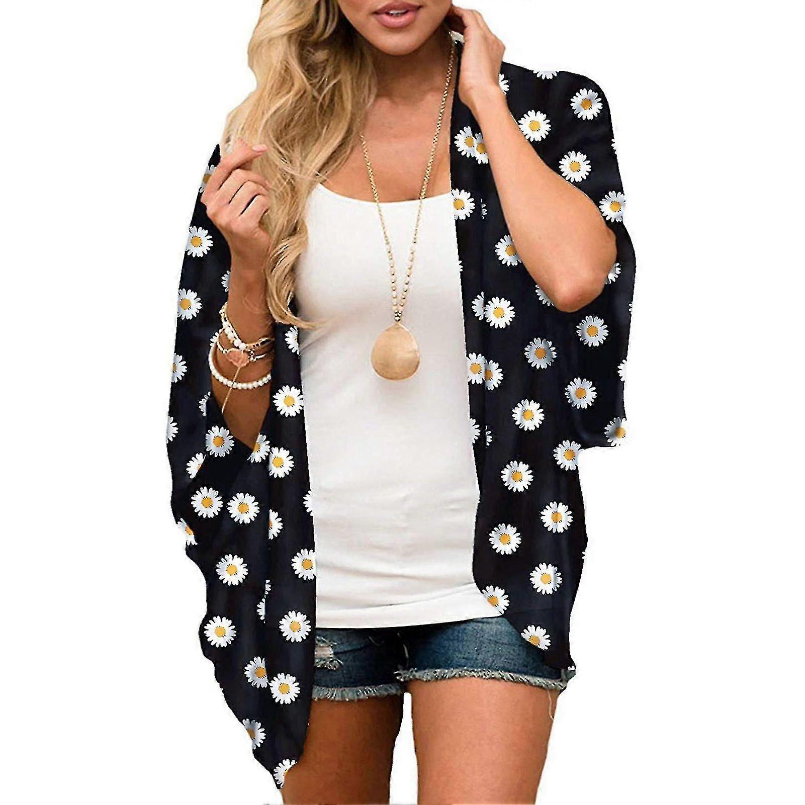 Floral Print 3/4 Sleeves Cardigan Loose Casual Fashion Surcoat For Women