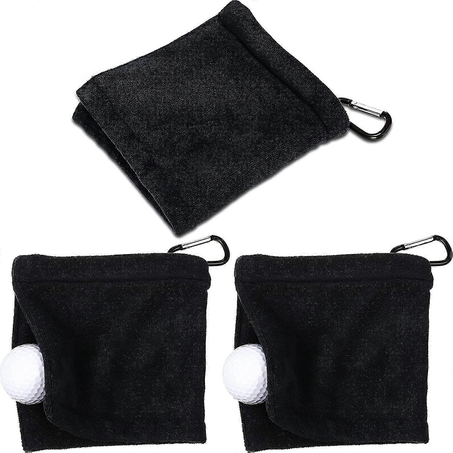 Golf Ball Towel - 5.5 x 5.5 Inch, Black, Golf Course Towel with Clip - Dry/Wet Use, For Golf Ball & Exercise