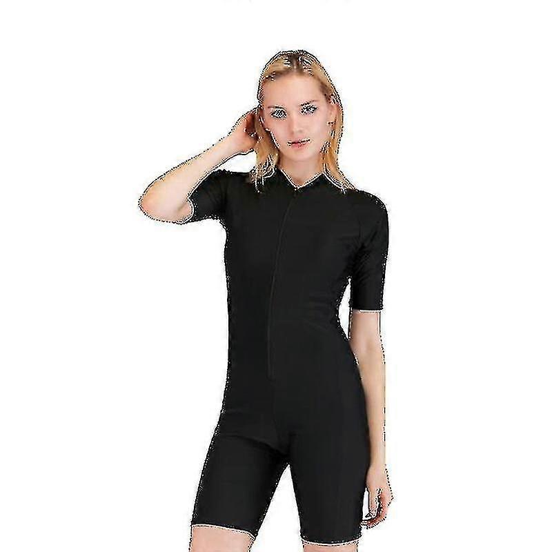 Women's Short-Sleeve Snorkeling Surfing Swimsuit, One-Piece Design for Sun Protection