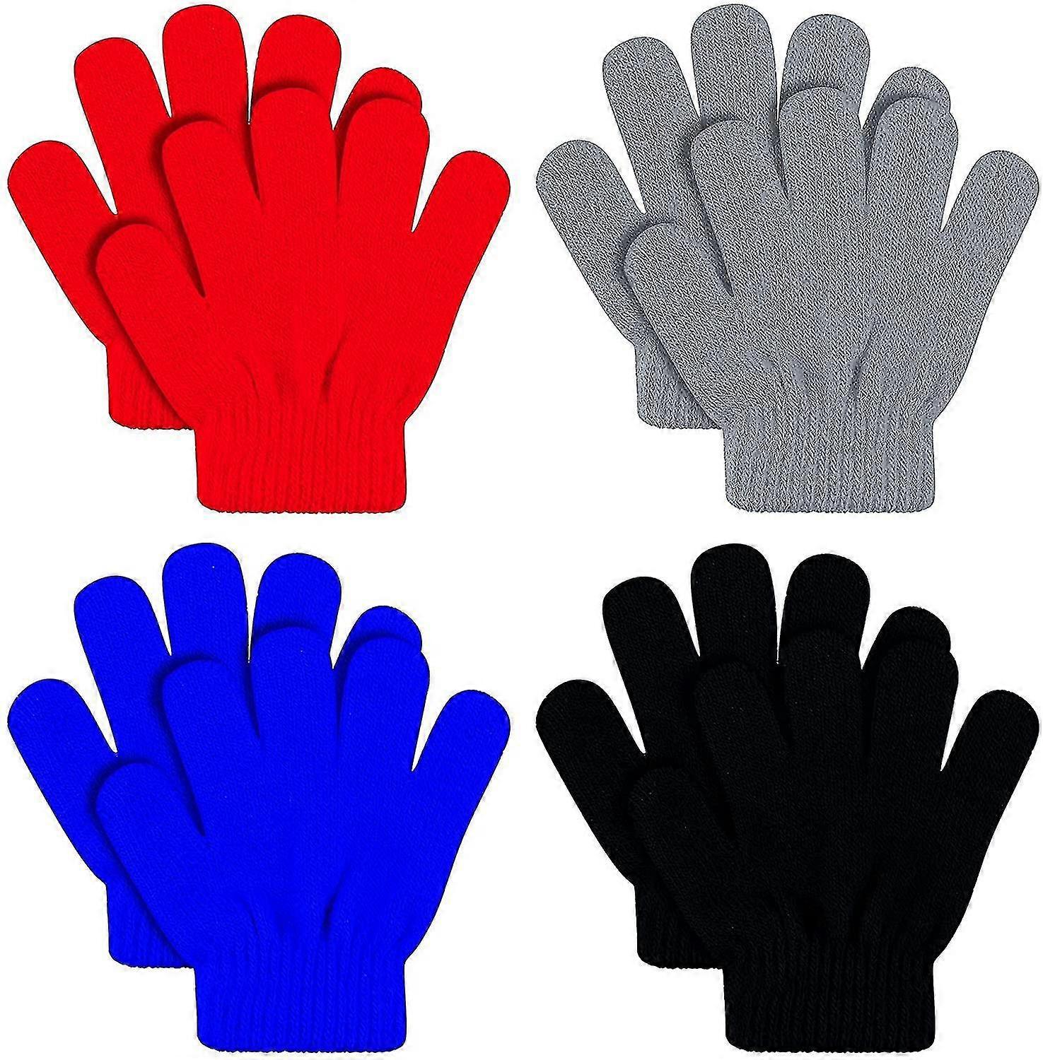 4 Pairs Winter Kids Gloves - Warm Full-Finger Knitted